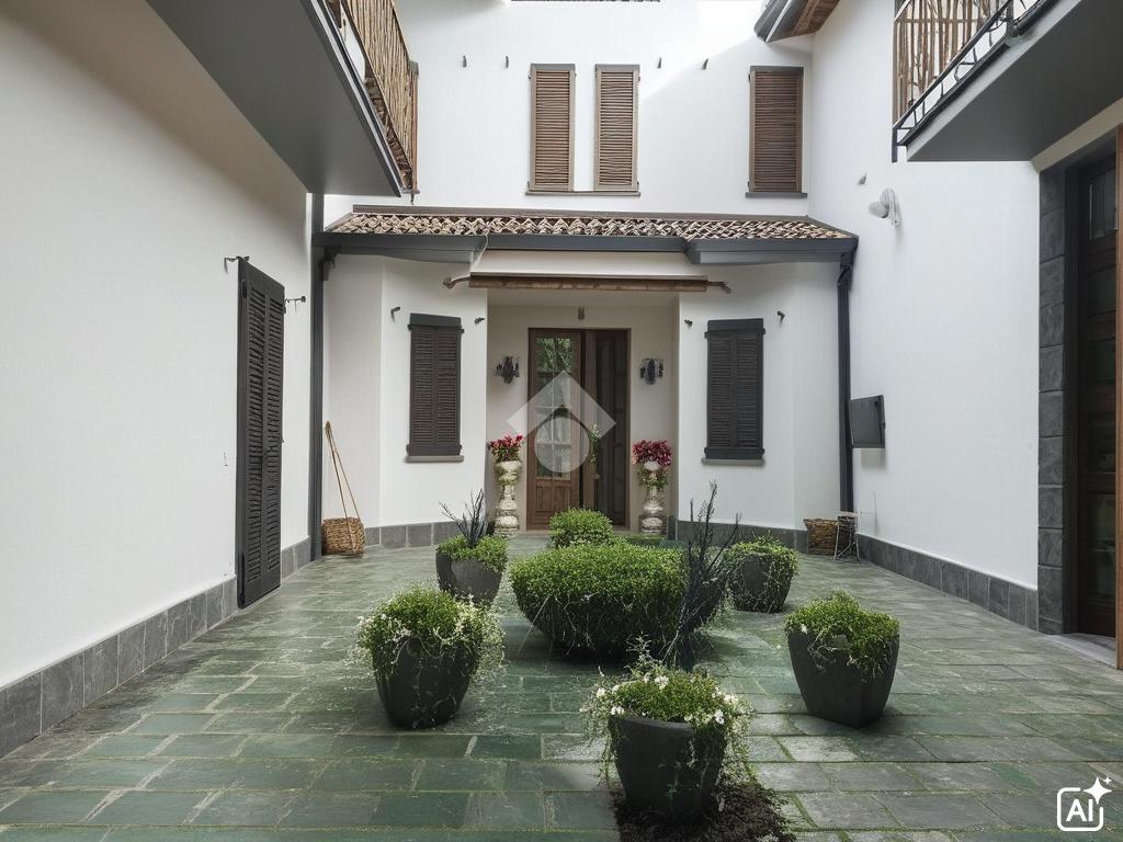All'esterno, due cortili privati con ingressi indipendenti, offrono spazi ideali per il relax all'aperto, mentre il giardino aggiunge un tocco di verde.